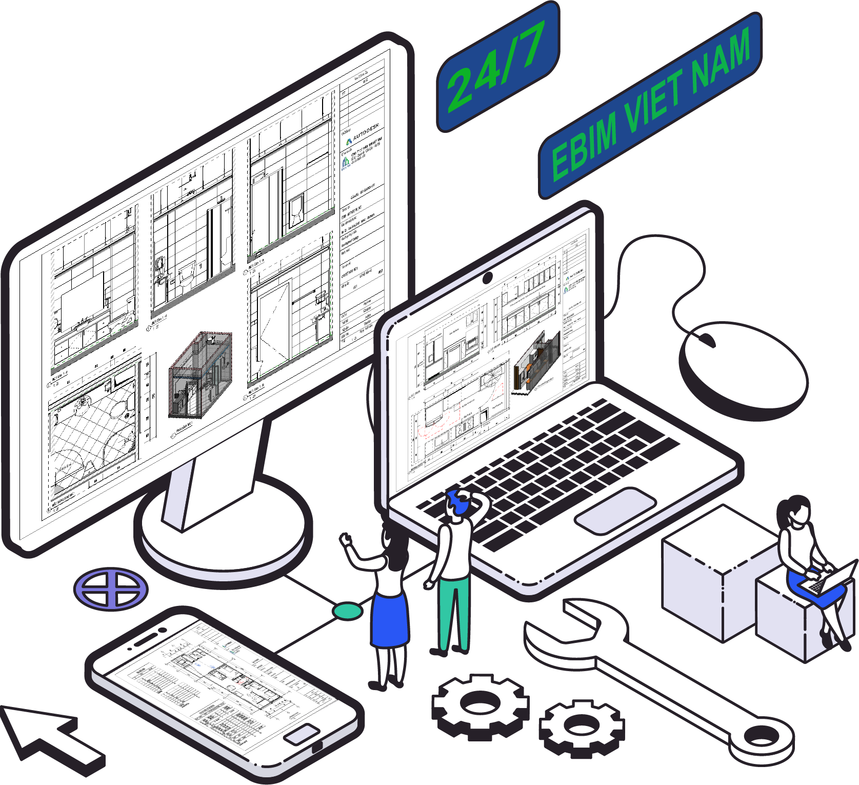 “Khi tìm hiểu về những ưu điểm vượt trội mà BIM mang lại trong ngành công nghiệp AEC, các lãnh đạo, các cấp quản lý và hàng loạt kỹ sư đều cảm thấy vô cùng phấn khích và kỳ vọng vào một kết quả kinh doanh mang tính đột phá, bước ngoặt cho tổ chức của mình. Tuy nhiên, sau những tháng ngày triển khai BIM thực tế tại doanh nghiệp mọi người mới ngã ngửa ra bởi mây hồng và nắng vàng không xuất hiện nhiều như họ từng nghĩ. Thay vào đó, các cấp quản lý phải đối diện thường xuyên với những thách thức về quy trình làm việc, chất lượng sản phẩm & tiến độ hoàn thành khi thực thi dự án trên một nền tảng BIM đồng bộ. Nguyên nhân thì vô cùng đa dạng, có thể là nhân sự đội nhóm nhiều biến động, tính năng của phần mềm còn hạn chế hay cấu hình máy tính không phù hợp với quy mô dự án… Từ góc nhìn chuyên gia của chúng tôi, gốc rễ của việc áp dụng BIM chưa thành công trong doanh nghiệp chỉ là vấn đề con người mà thôi. Hãy đồng hành cùng Ebim Vietnam Academy để nâng cao nhận thức về BIM và đạt đến sự chuyên nghiệp trong kiểm soát. Chúng tôi sẽ mang đến những kiến thức, với lãnh đạo để có một tầm nhìn đúng, với nhà quản lý để ban hành chuỗi quy trình phù hợp, với kỹ sư/kiến trúc sư để sở hữu nhóm kỹ năng phát triển mô hình BIM đậm chất học thuật.”